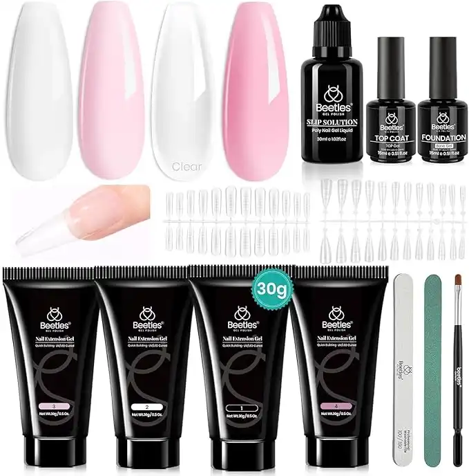 amazon.aeBeetles Gel Polish Poly Nail Extension Kit, 4 Colors Pink White Builder Sheer Clear Art Kit With Brush And Slip Solution Salon All In One French For Women