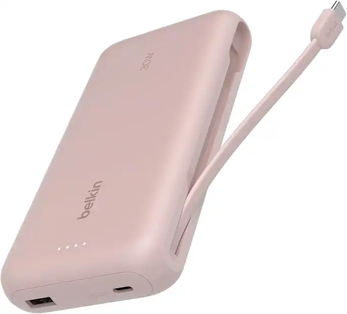 amazon.aeBelkin Portable Charger, Power Bank with Integrated Cable 20K PD 30W - Fast Charging USB-C Power Delivery, Portable Charger for iPhone 17 Series, iPad Pro, Galaxy S25 Series, and More - Pink