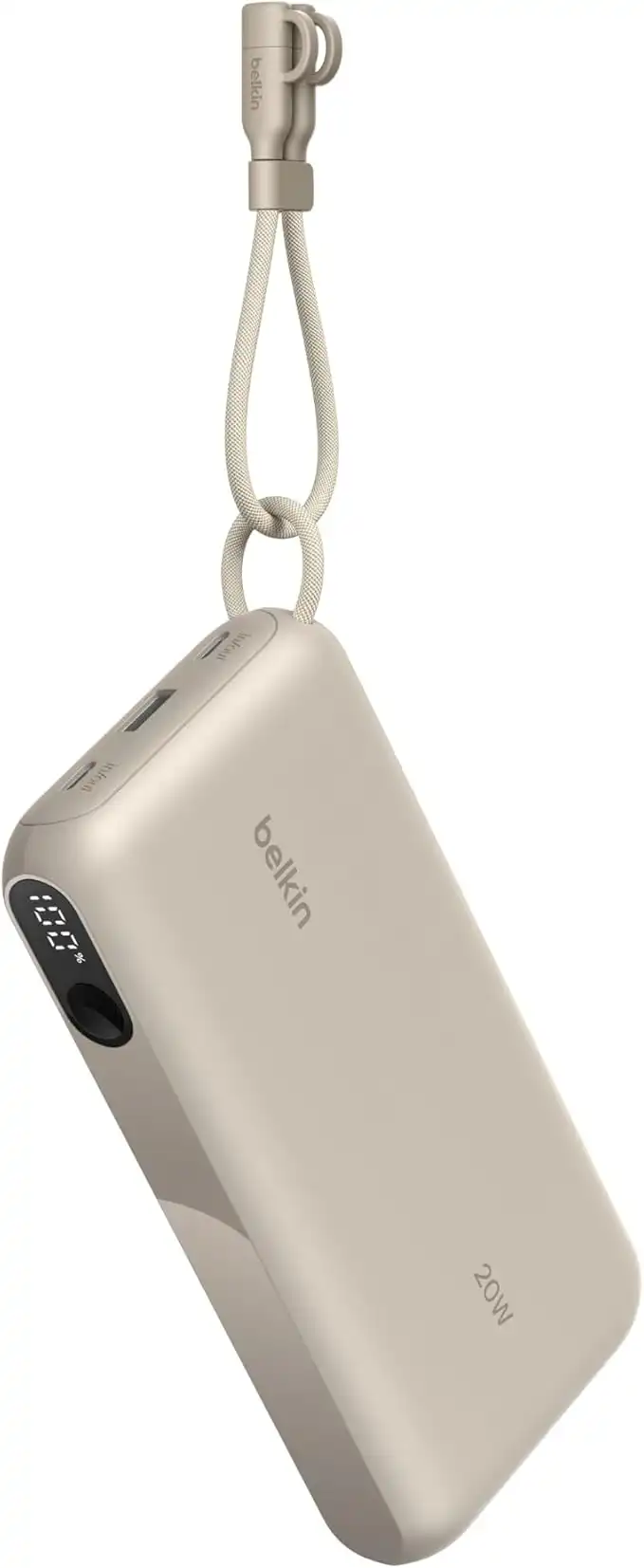 Belkin USB-C Portable Charger, 20,000mAh Dual USB C and Type-A Ports, Battery Display Support 20W Charging for iPhone 16, Samsung Galaxy S25, Pixel 9, iPad - Sand