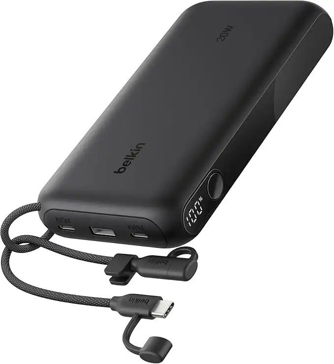 amazon.aeBelkin USB-C Portable Charger, 20,000mAh Dual USB C and Type-A Ports, Battery Display Support 20W Charging for iPhone 16, Samsung Galaxy S25, Pixel 9, iPad - Black