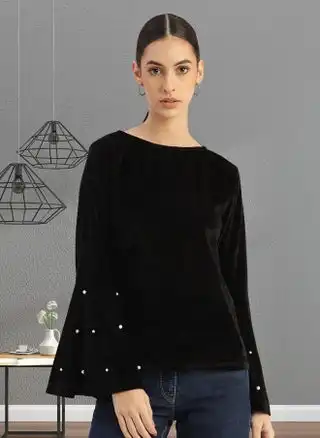 Bell Sleeve Black Top for Women