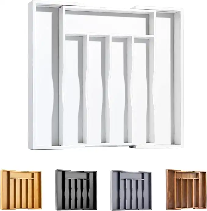 Bellsal White Silverware Organizer Kitchen Drawer Organizer Expandable Bamboo Utensil Holder Cutlery Tray for Kitchen Utensil and Flatware Bedroom Office — Price History & Tracker | DeserTracker
