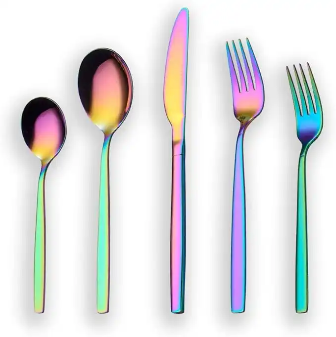 Berglander Rainbow Silverware Set 20 Pieces Service for 4, Colorful Titanium Plating Stainless Steel Flatware Sets, First Apartment Must Have Cutlery Utensils Set, Dishwasher Safe — Price History & Tracker | DeserTracker