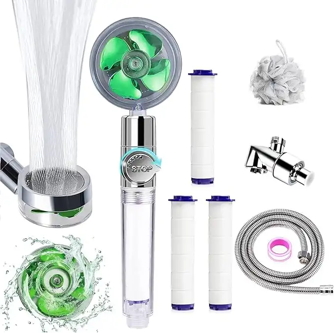 Besititli High Pressure Handheld Showerhead Hydro Jet Shower Head Turbo ShowerHead Propeller with Replacement Hose/Bracket/Cotton Filters and Bath Loofah-Transparent Green — Price History & Tracker | DeserTracker