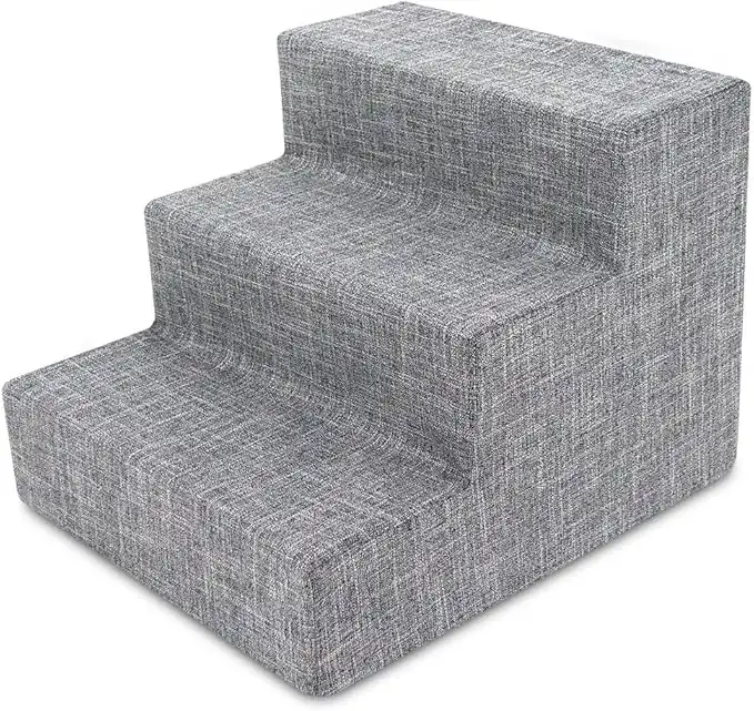 Best Pet Supplies Foam Pet Steps for Small Dogs and Cats, Portable Ramp Stairs for Couch, Sofa, and High Bed Climbing, Non-Slip Balanced Indoor Step Support, Paw Safe - Ash Gray Linen, 3-Step