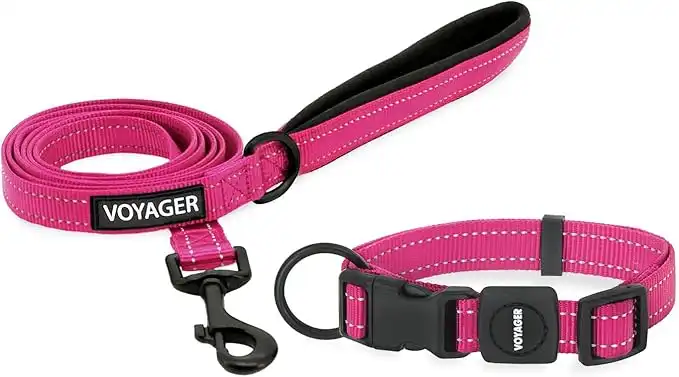 Best Pet Supplies Voyager Adjustable Nylon Dog Collar & Dog Leash Bundle - Soft Padded Handle & Neck with Reflective Stiching for Puppies, Small, Medium, & Big Dogs (Fuchsia,3/4") — Price History & Tracker | DeserTracker