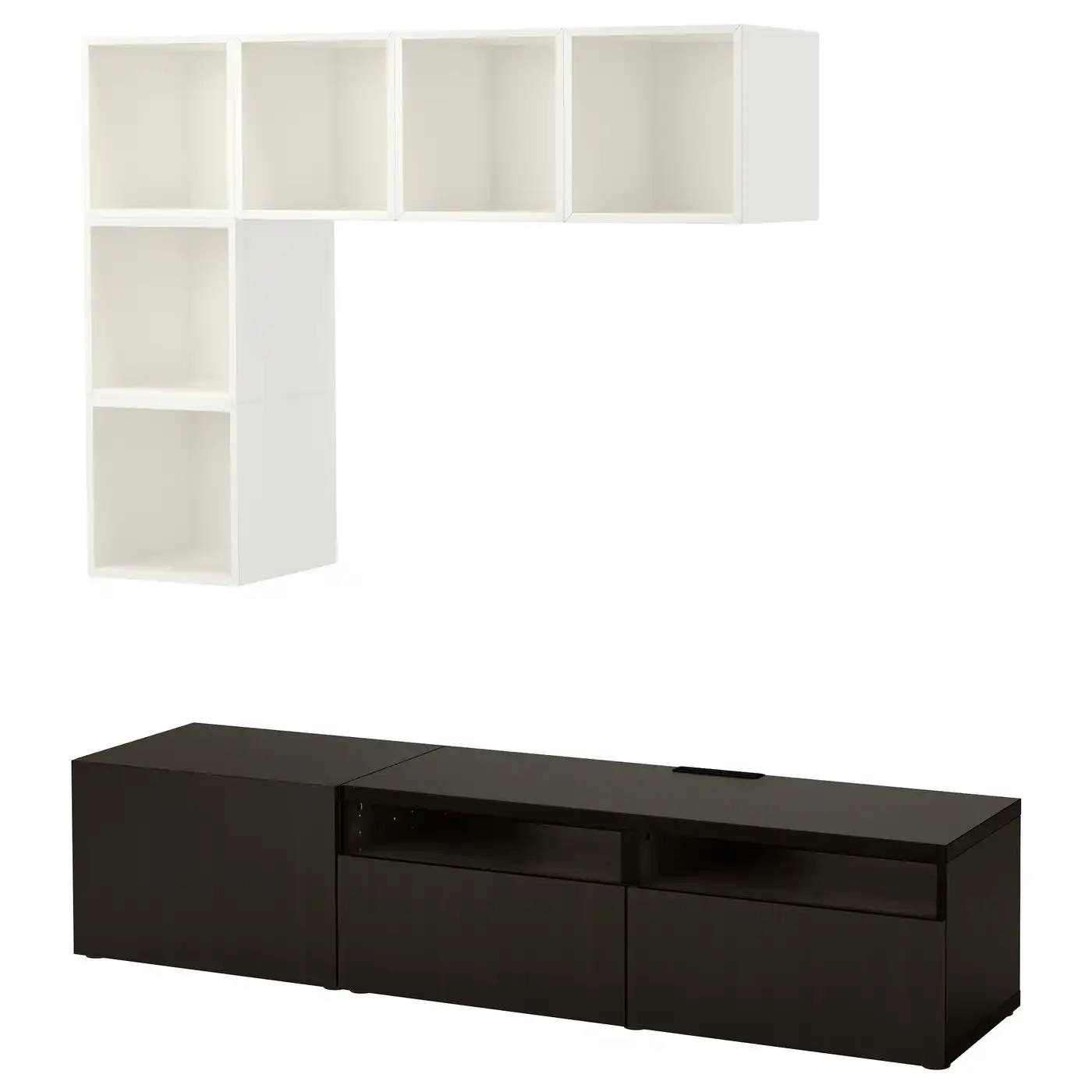 BESTÅ / EKET Cabinet combination for TV - white/black-brown 180x42x170 cm