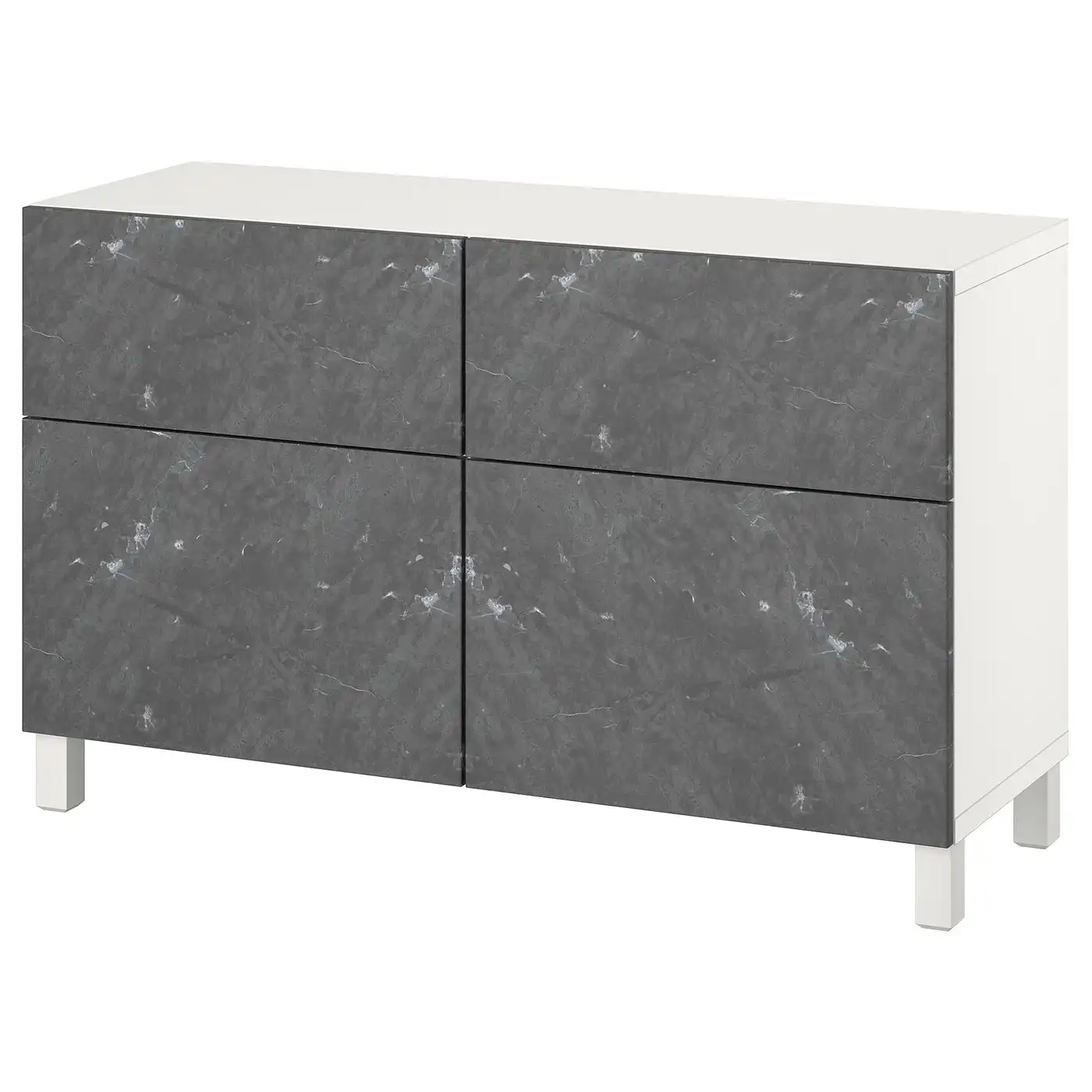 BESTÅ Storage combination w doors/drawers - white Bergsviken/Stubbarp/black marble effect 120x42x74 cm