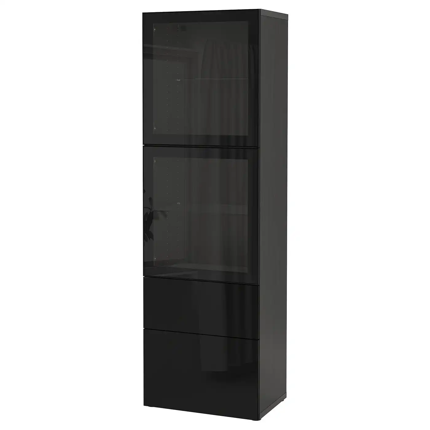 BESTÅ Storage combination w glass doors - black-brown/Selsviken high-gloss/black clear glass 60x42x193 cm