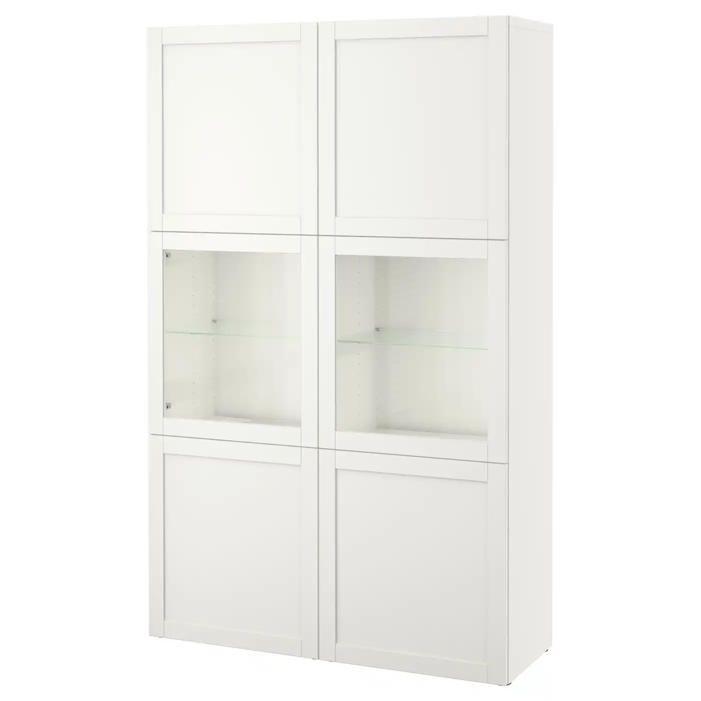 BESTÅ Storage combination w glass doors - white Hanviken/Sindvik white clear glass 120x42x193 cm — Price History & Tracker | DeserTracker