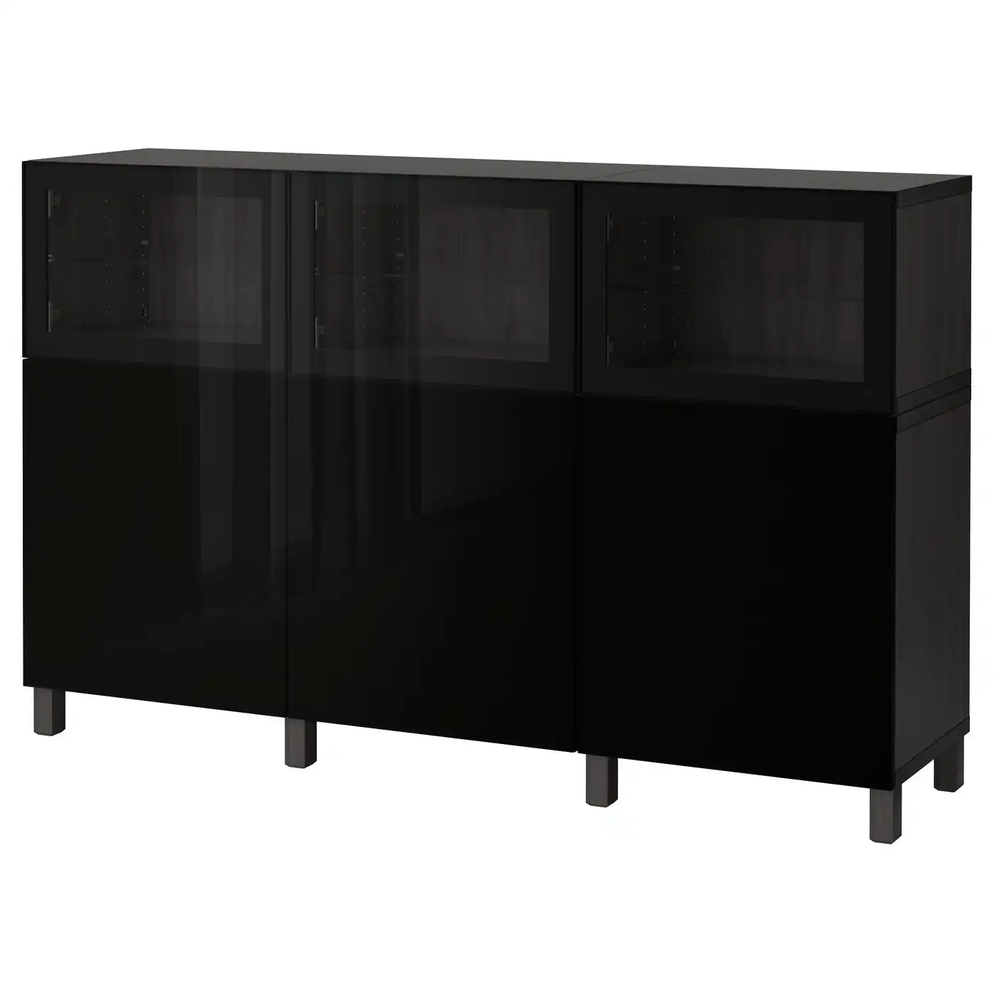 BESTÅ Storage combination with doors - black-brown Selsviken/Glassvik high-gloss/black clear glass 180x42x112 cm — Price History & Tracker | DeserTracker