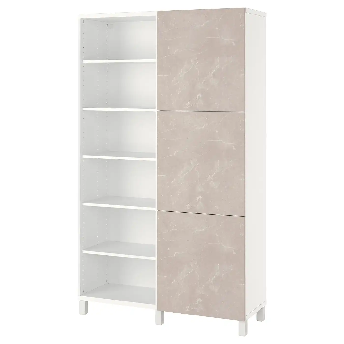 BESTÅ Storage combination with doors - white Bergsviken/beige marble effect 120x42x202 cm