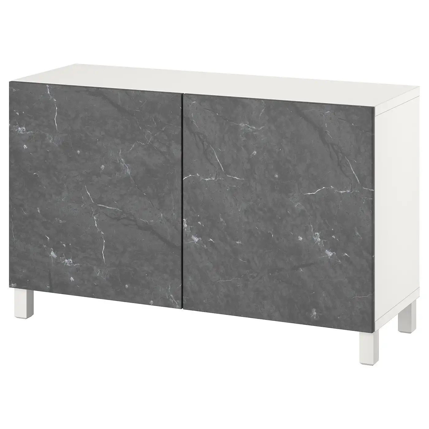BESTÅ Storage combination with doors - white Bergsviken/Stubbarp/black marble effect 120x42x74 cm
