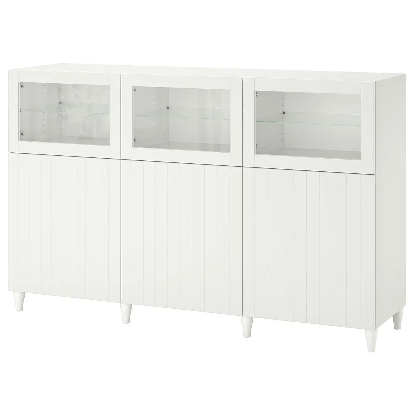 BESTÅ Storage combination with doors - white/Sutterviken/Kabbarp white clear glass 180x42x112 cm — Price History & Tracker | DeserTracker