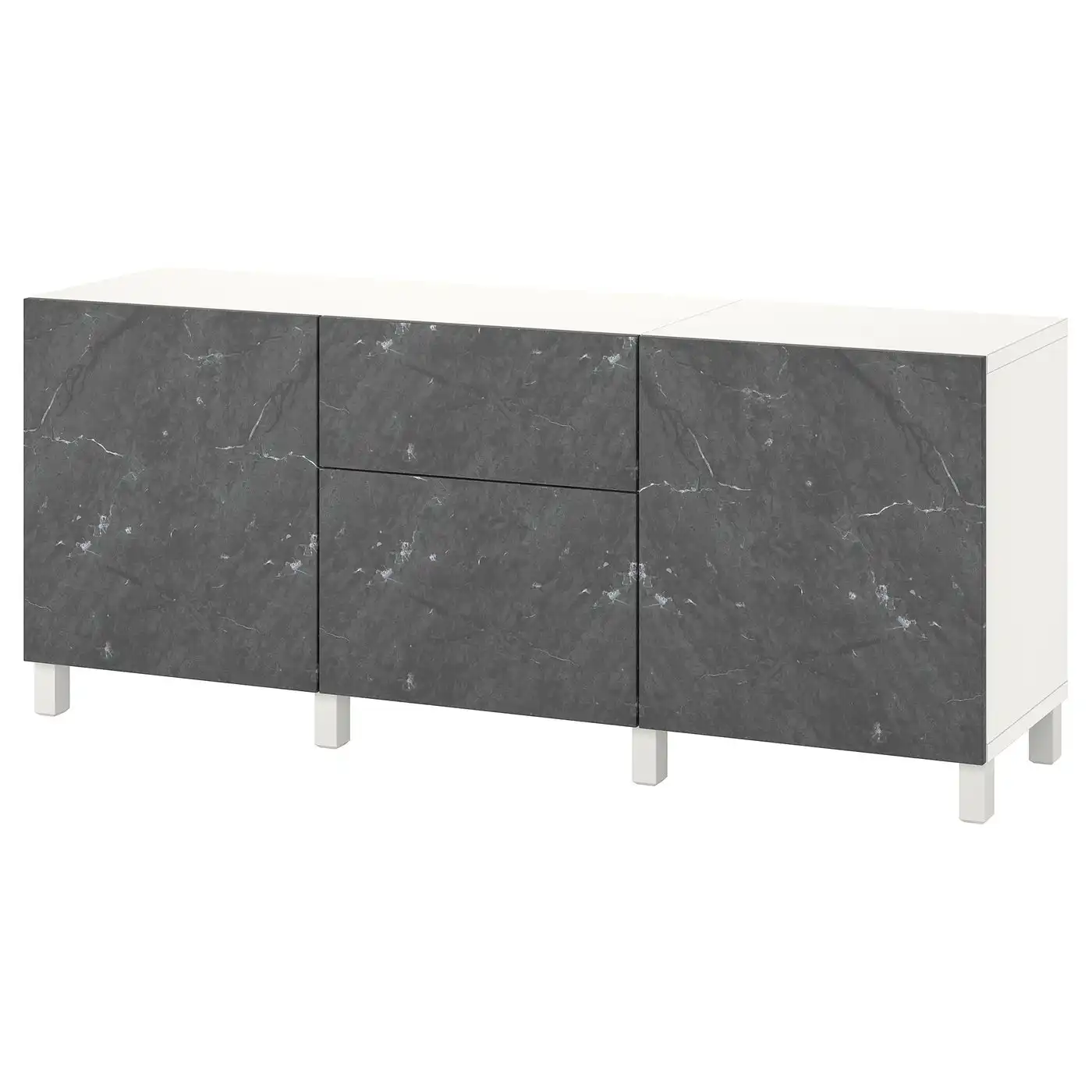 BESTÅ Storage combination with drawers - white Bergsviken/Stubbarp/black marble effect 180x42x74 cm