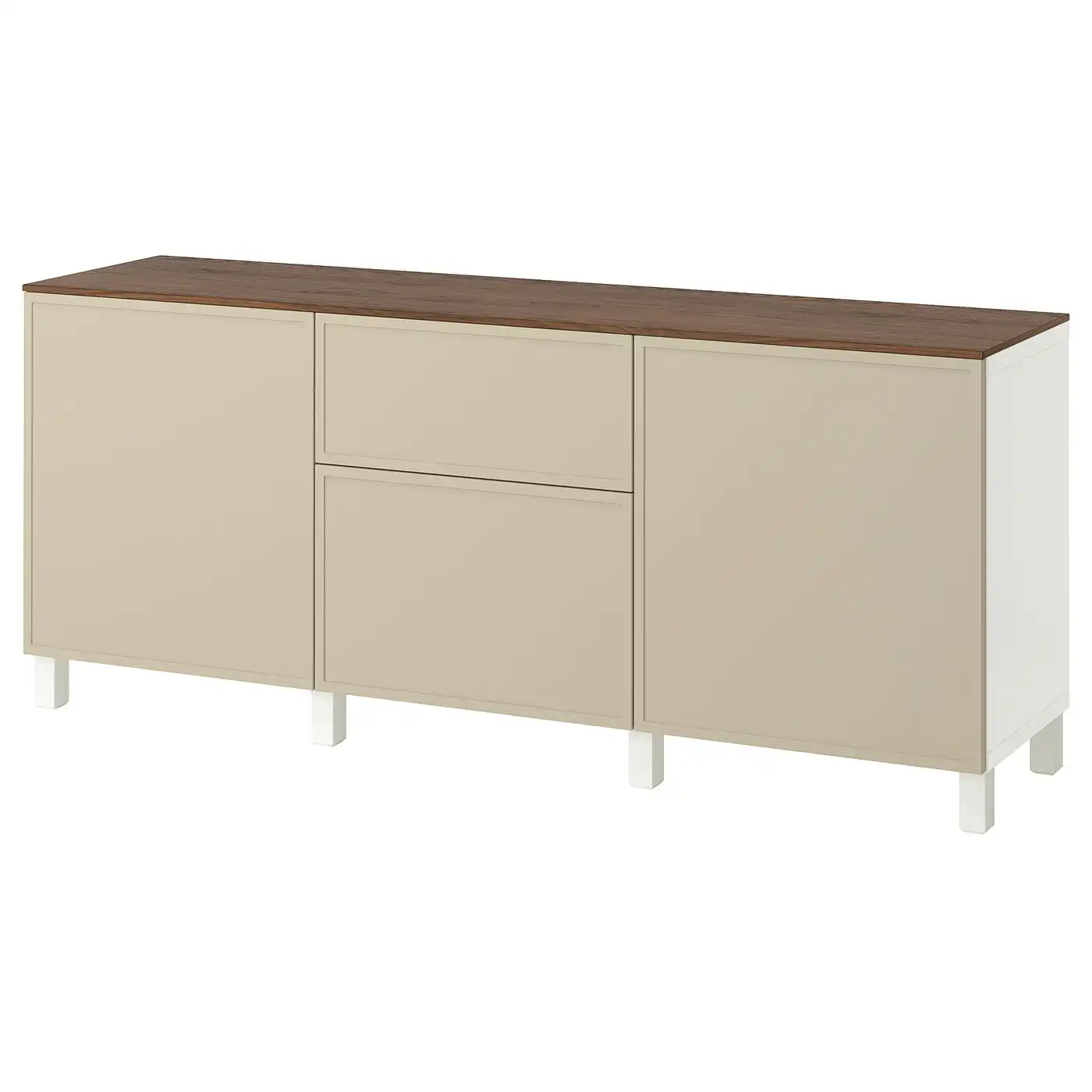 BESTÅ Storage combination with drawers - white/Krukmakare beige 180x42x75 cm
