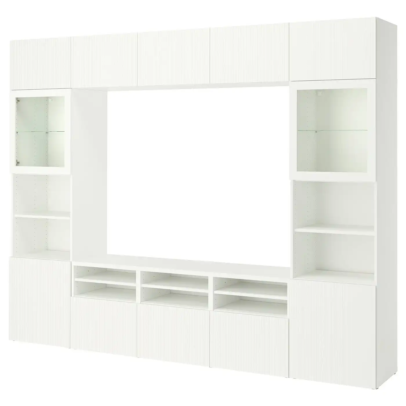 Compare all IKEA BESTÅ TV storage combination 300x42x231 cm white/Förvaltare white clear glass prices