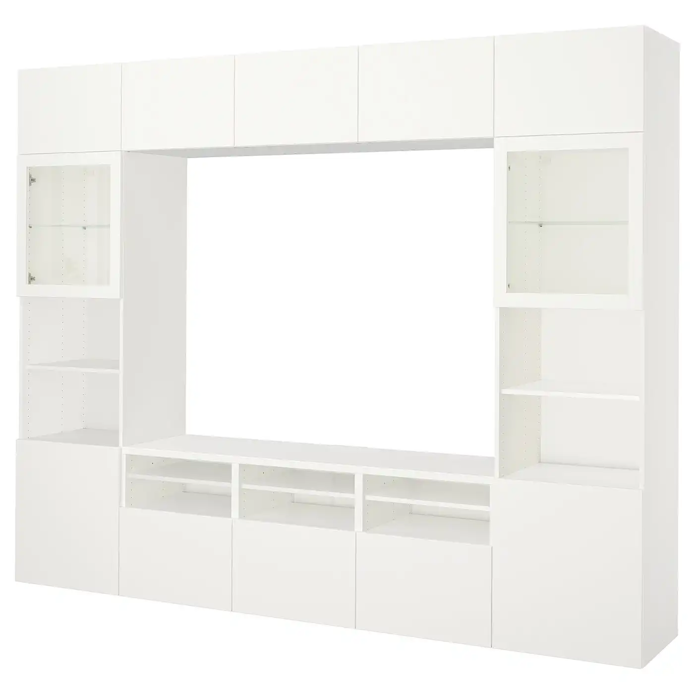 BESTÅ TV storage combination/glass doors - white/Lappviken white clear glass 300x42x231 cm