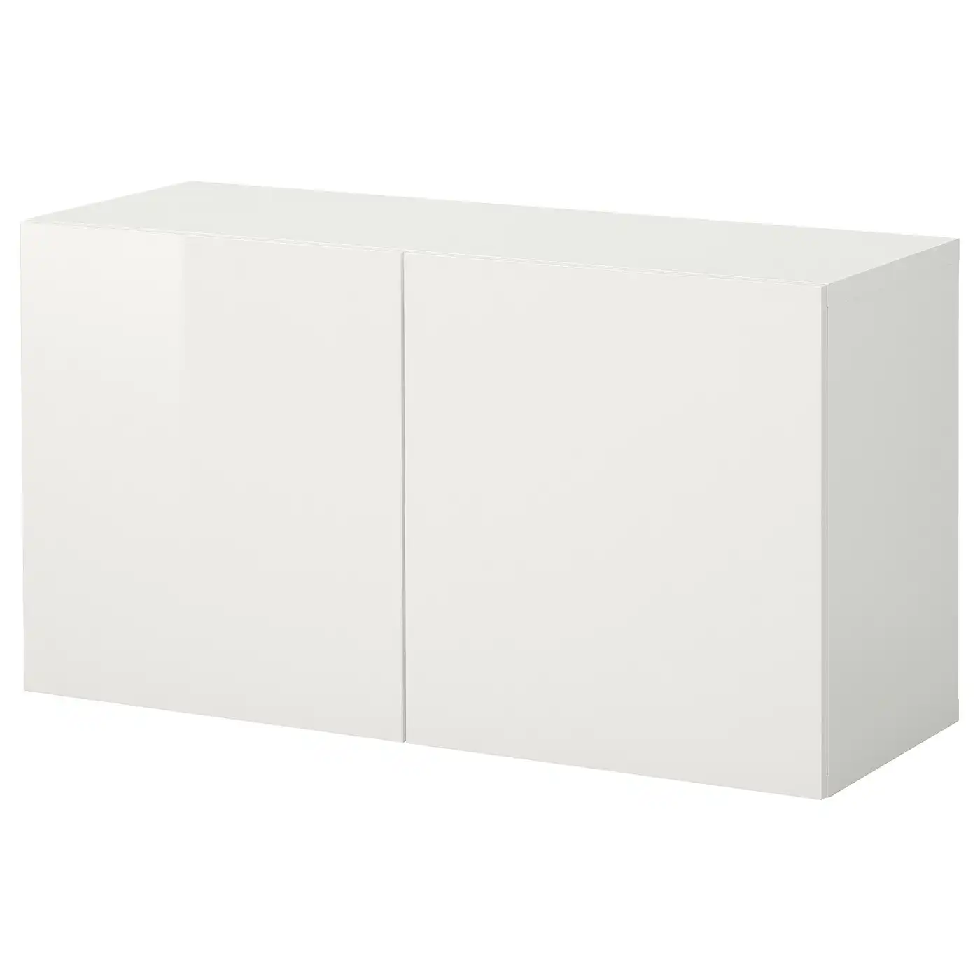 BESTÅ Wall-mounted cabinet combination - white/Selsviken high-gloss 120x42x64 cm