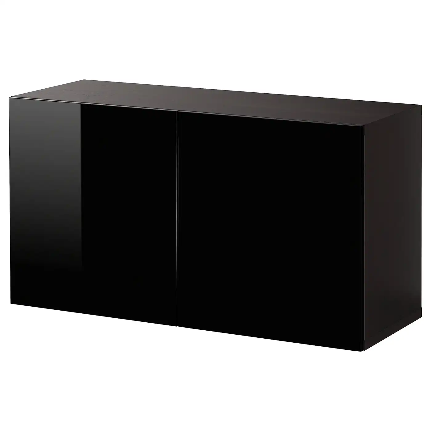 BESTÅ Wall-mounted cabinet combination - black-brown/Selsviken black 120x42x64 cm