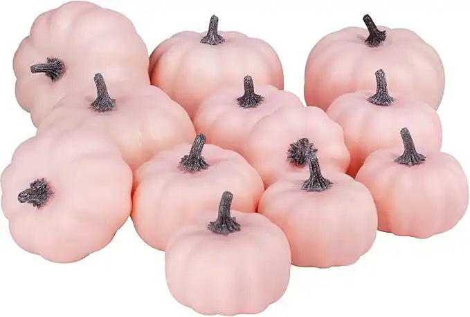 amazon.aeBESTTOYHOME 12 Pcs Assorted Faux Small Light Pink Pumpkins Decorative Pumpkins Pale Pink Foam Pumpkins for Fall Halloween Thanksgiving Wedding Baby Shower Table Centerpiece Farmhouse Decor