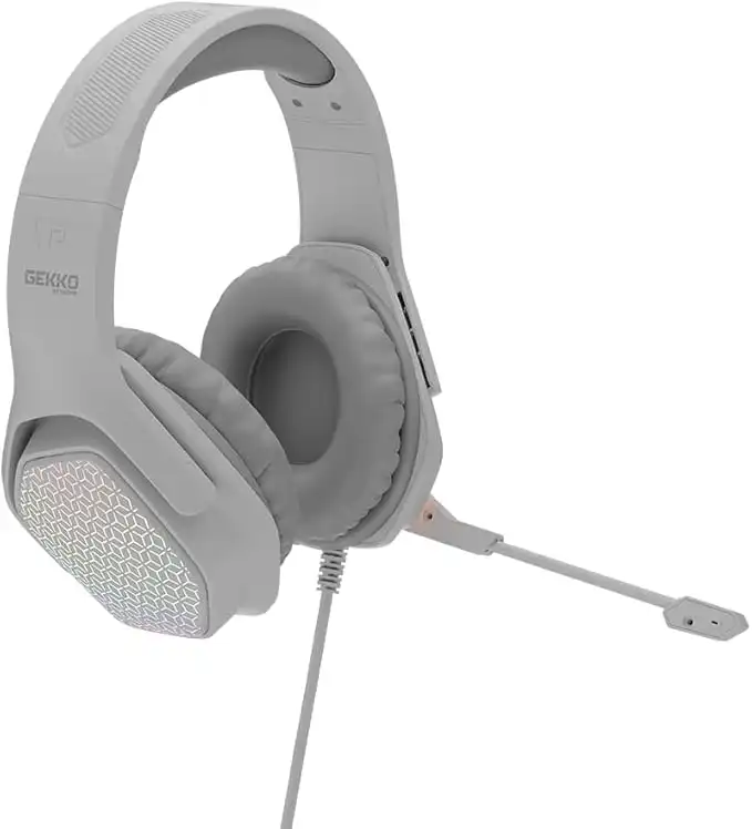 BG500 Gekko Gaming Headphones with LED RGB, Ultra-Clear Mic, Deep Bass 40mm Drivers, Noise-Isolating Cushions, Adjustable Headband, Lightweight Design – Compatible with PC/PS4/PS5/Mobile (White)