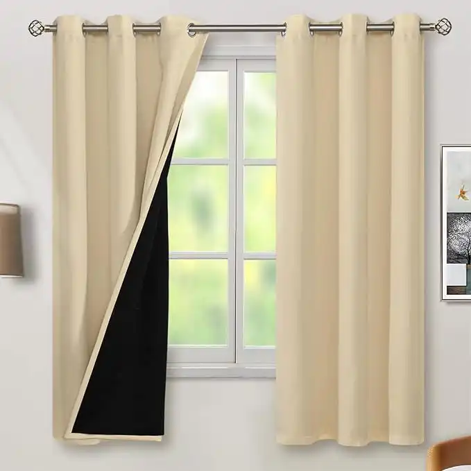 amazon.aeBGment Thermal Insulated 100% Blackout Curtains for Bedroom with Black Liner, Double Layer Full Room Darkening Noise Reducing Grommet Curtain (42 x 63 Inch, Natural, 2 Panels)