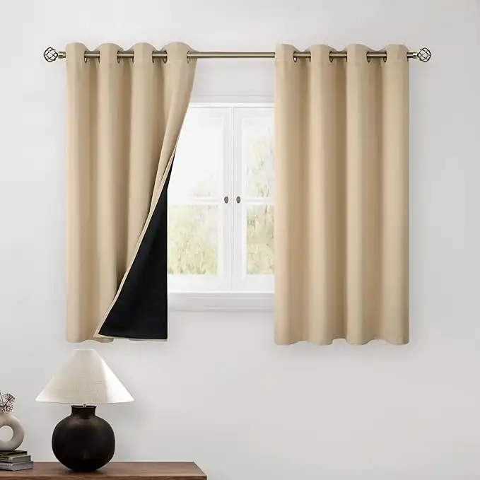 BGment Short 100% Blackout Curtains for Bedroom, Thermal Insulated Energy Efficiency Noise Reducing Grommet Curtains 45 Inch Length with Liner for Small Window 2 Panels Each 52 Inch Wide, Beige — Price History & Tracker | DeserTracker
