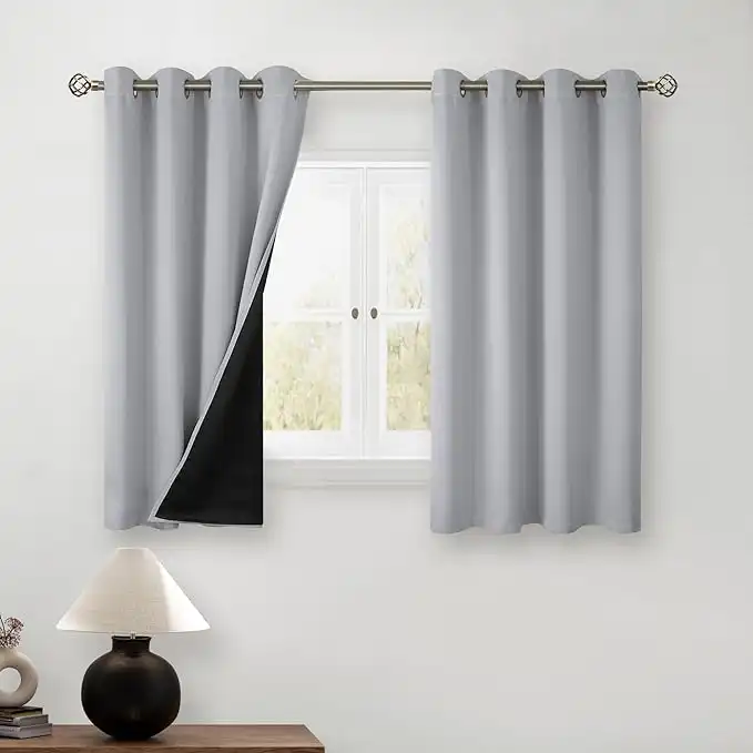 BGment Short 100% Blackout Curtains for Bedroom, Thermal Insulated Energy Efficiency Noise Reducing Grommet Curtains 45 Inch Length with Liner for Small Window 2 Panels Each 52 Inch Wide, Light Grey — Price History & Tracker | DeserTracker