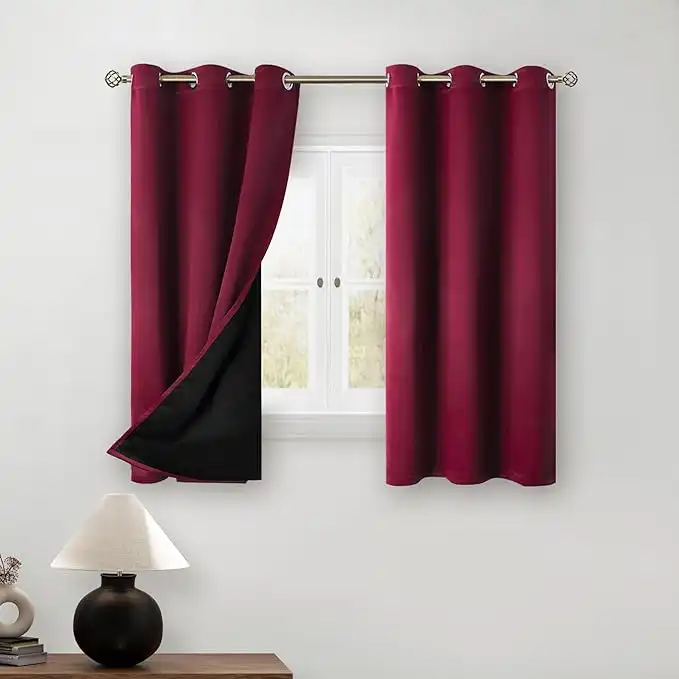 amazon.aeBGment Short 100% Blackout Curtains for Bedroom, Thermal Insulated Lined Energy Efficiency Noise Reducing Grommet Curtains 45 Inch Length for Small Window 2 Panels Each 42 Inch Wide, Burgundy Red