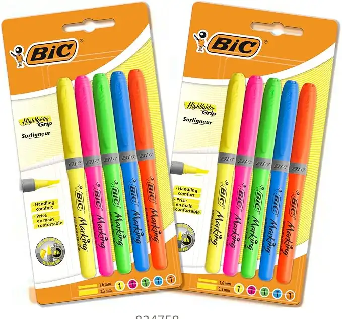 Bic 511032 Highlighter Grip Pens with Modular Chiselled Nib and Water-Based Ink - Assorted Colours- 10 (2 Packs of 5) — Price History & Tracker | DeserTracker
