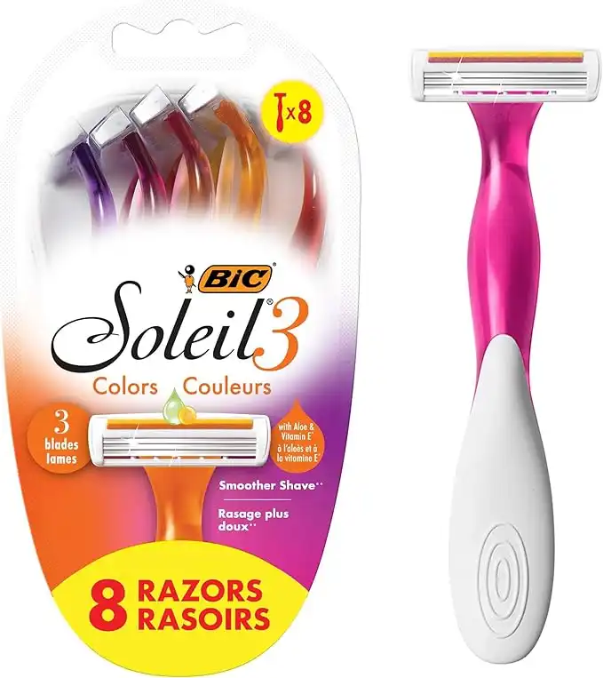 BIC Soleil SMOOTH COLORS Disposable Razors for Women Sensitive Skin Razor With Aloe Vera and Vitamin E Lubricating Strip and 3 Blades, 8 Piece Razor Set — Price History & Tracker | DeserTracker