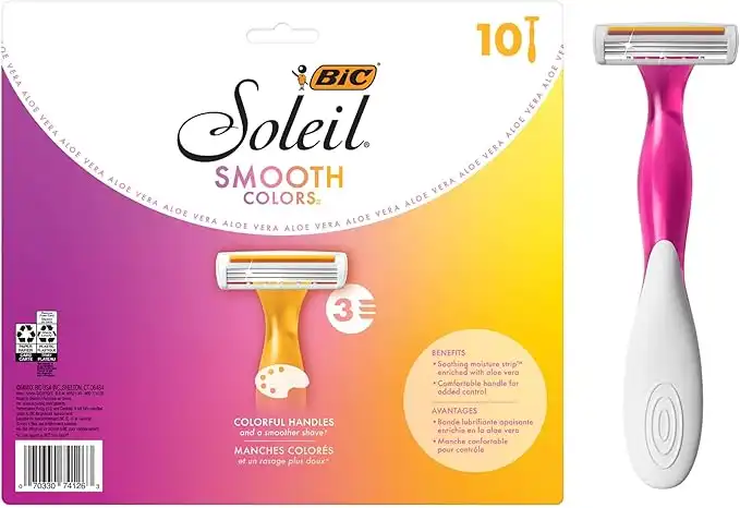 BIC Soleil Smooth Colors Women's Disposable Razors With Aloe Vera and Vitamin E Lubricating Strip for Enhanced Glide, With 3 Blades, 10 Count — Price History & Tracker | DeserTracker
