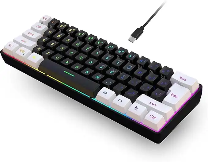 BIGTHREE 60% Wired Gaming Keyboard, Ultra-Compact RGB Backlit Mini Keyboard with 61 Keys, Waterproof Membrane Design for PC/Mac Gamers & Typists, Portable for Travel & Office (Black-White)