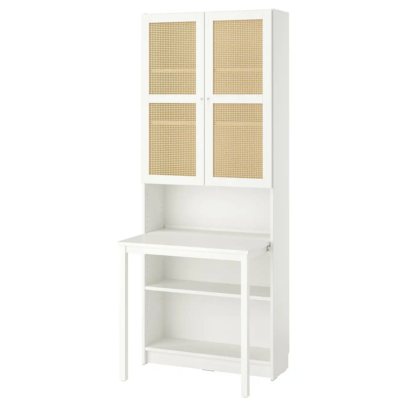 BILLY / HÖGADAL Bookcase with desk - white/woven bamboo 80x202 cm