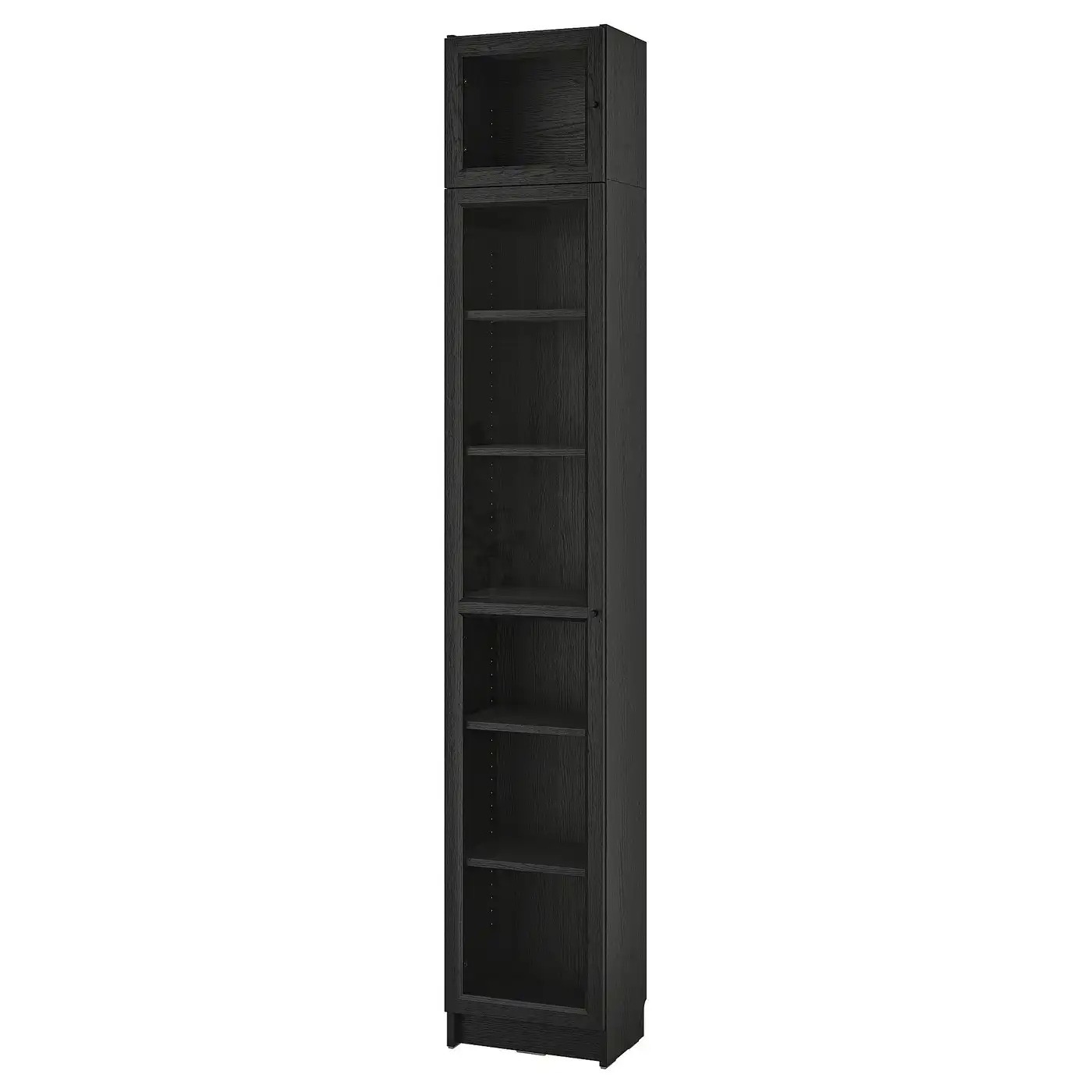 BILLY / OXBERG Bookcase w glass doors/ext unit - black oak effect 40x30x237 cm