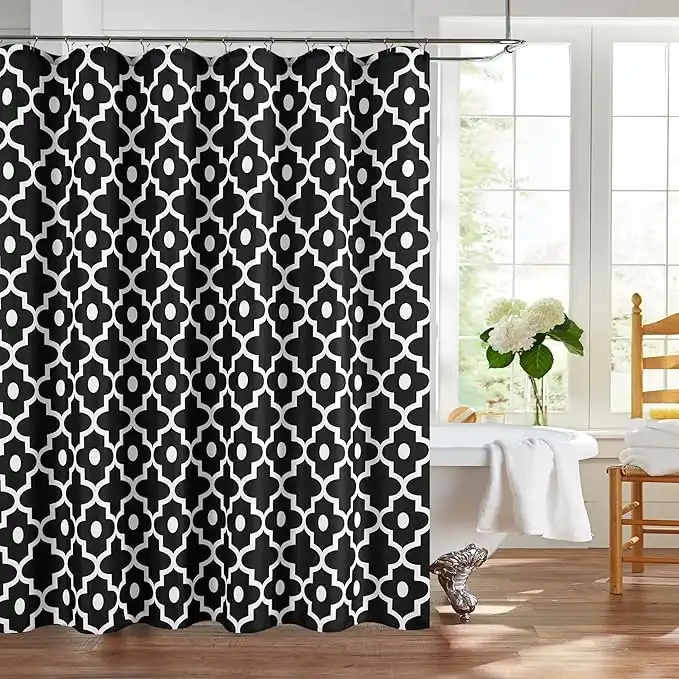Biscaynebay Textured Fabric Shower Curtains for Bathroom 72" X 72", Black Morocco Pearl Printed Linen Modern Hotel Luxury Quality Cloth Bath Curtains Machine Washable