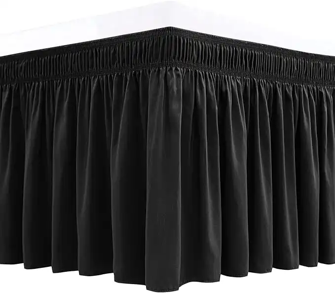 Biscaynebay Wrap Around Bed Skirts Elastic Bed Ruffles, Easy Fit Wrinkle and Fade Resistant Solid Colour Silkt Luxurious Textured Fabric, Black Queen Size15 Inches Drop — Price History & Tracker | DeserTracker