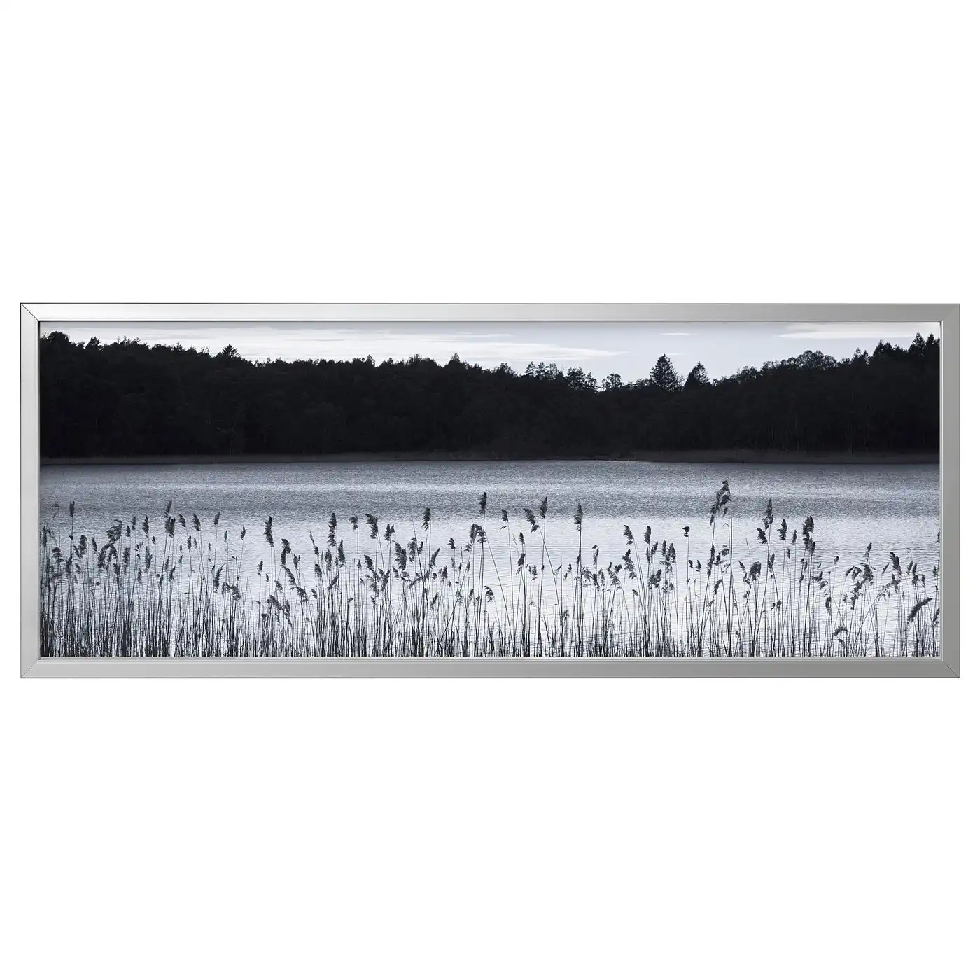 BJÖRKSTA Picture with frame - Woodland lake/aluminium-colour 140x56 cm