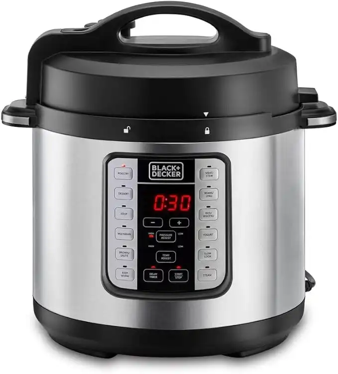 Black & Decker 1000W 6L Electric Pressure Cooker 7in1, With 12 Smart Programs 9 Safety Features Dishwasher Safe with Accessories, For Quick and Easy Meals PCP1000-B5 2 Years Warranty