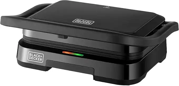 BLACK+DECKER 1300W Electric Panini Grill & Sandwich Maker, Non-Stick Plates, 180° BBQ Hinge, Double Grilling Area, Removable Drip Tray, Cool-Touch Handle – 2 Toast Capacity - PCG1300-B5