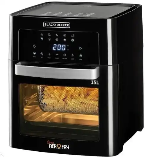 BLACK+DECKER Digital Air Fryer Oven, 1700W, 15L Family-Sized Capacity, Touch Control, 10 Preset Functions, 80-220°C Adjustable Temp, Rapid Air Convection, Smoke-Free Cooking, Black - AOF150-B5