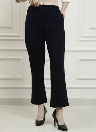 Black Relaxed Fit Formal Trousers for Women