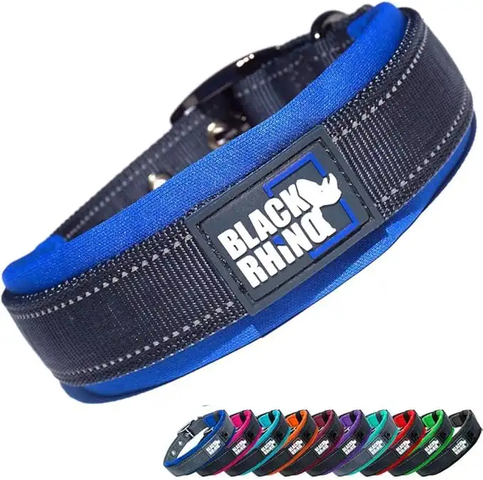 Black Rhino - The Comfort Collar Ultra Soft Neoprene Padded Dog Collar for All Breeds - Heavy Duty Adjustable Reflective Weatherproof (Medium, Blue/Grey) — Price History & Tracker | DeserTracker