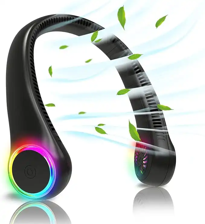 Bladeless Portable Neck Fan - Rechargeable Hands Free USB Personal Fan Battery Operated with LED lights for Home Office Travel Indoor Outdoor (DNF Black) — Price History & Tracker | DeserTracker