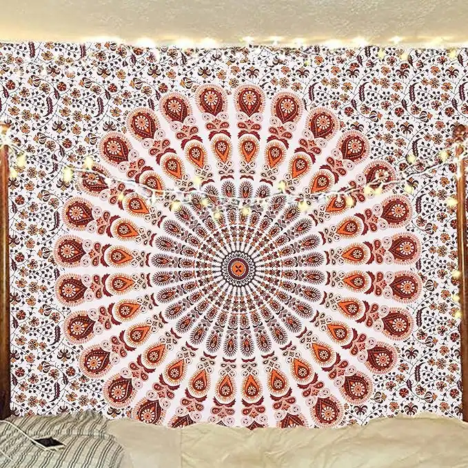 Bless International Handmade Indian Tapestry Hippie Bohemian Peacock Tapestry Peacock Mandala Tapestry for Dorm Room Beach Table Throw (Orange Brown, Poster (76 x 101 cm) — Price History & Tracker | DeserTracker