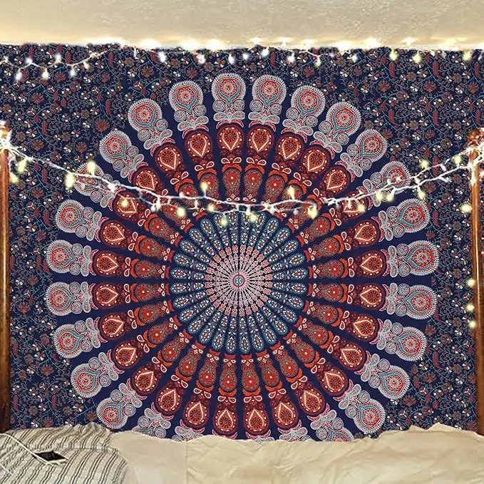 Bless International Indian hippie Bohemian Psychedelic Peacock Mandala Wall hanging Bedding Tapestry (Golden Blue White, Queen (84x90Inches)(215x230Cms)) — Price History & Tracker | DeserTracker