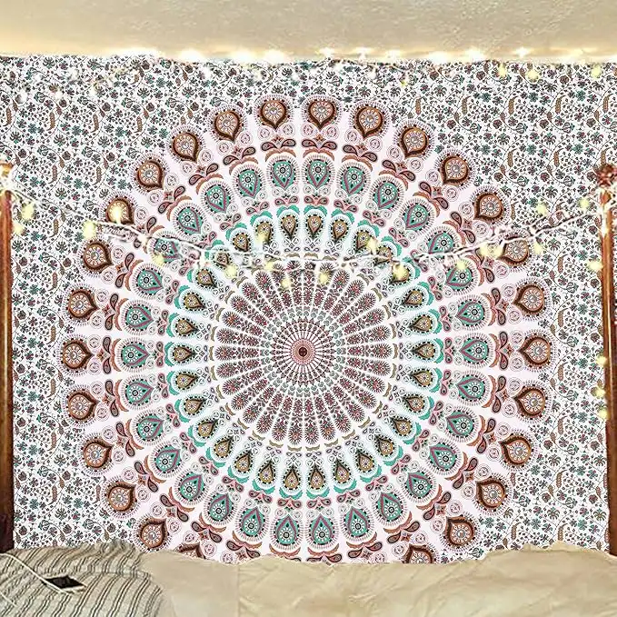 Bless International Indian hippie Bohemian Psychedelic Peacock Mandala Wall hanging Bedding Tapestry (Floral Gold, King (88x104Inches)(225x265Cms)) — Price History & Tracker | DeserTracker