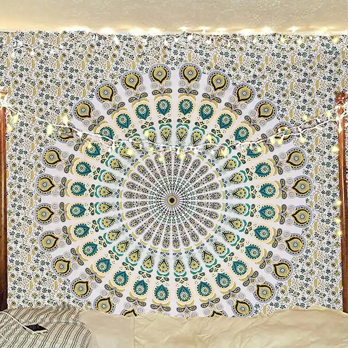Bless International Indian hippie Bohemian Psychedelic Peacock Mandala Wall hanging Bedding Tapestry (Yellow Green, Queen (84x90Inches)(215x230Cms)) — Price History & Tracker | DeserTracker