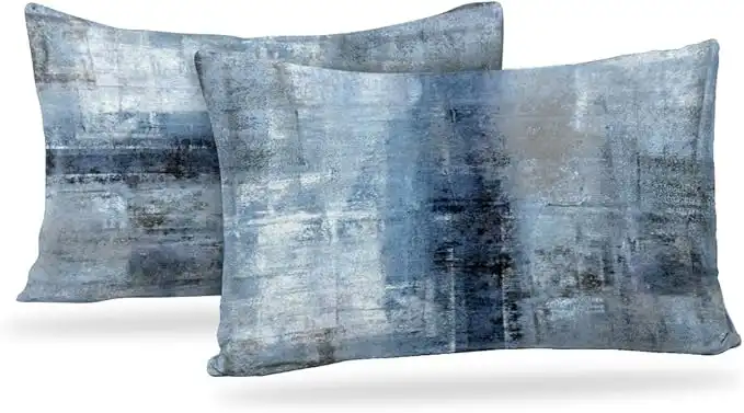 Blue and Grey Abstract Art Artwork Pillow Cover, Gallery Modern Decorative Throw Pillows Cushion Cover for Bedroom Sofa Living Room 12 x 20 Inch Set of 2 — Price History & Tracker | DeserTracker
